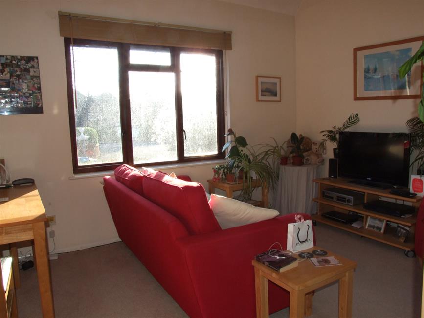 Dual aspect overlooking the communal gardens with further light from a high Velux window above a galleried wall. Wide arch to kitchen.