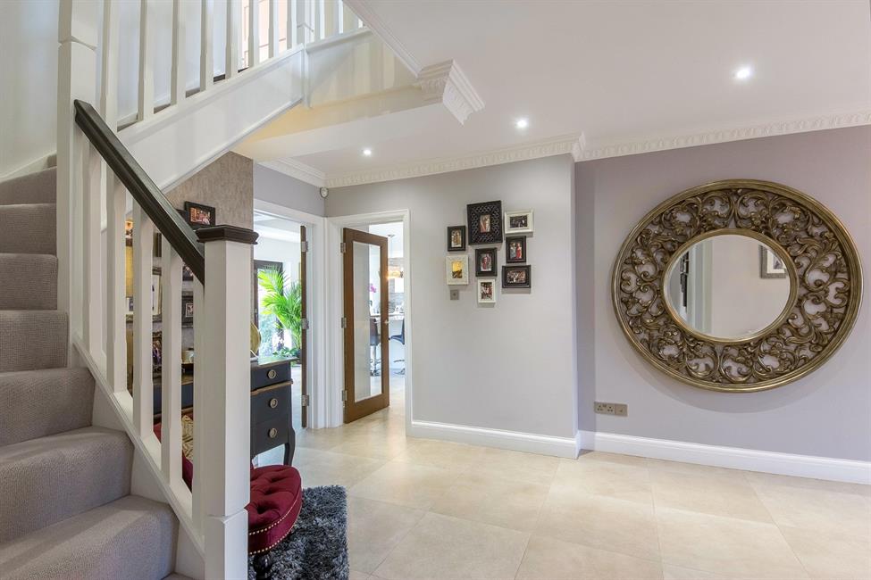 The versatile accommodation comprises a fabulous open plan kitchen/breakfast/dining/snug room with bi-folding doors to the rear garden, spacious drawing room, games/family room, study, downstairs cloakroom and utility room. Upstairs there are five sizeable bedrooms including an impressive master bedroom suite with dressing room and a luxuriously appointed en-suite bathroom, guest bedroom with en-suite and a family bathroom.