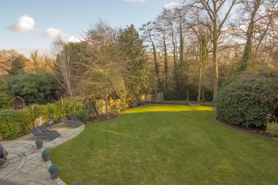 The south facing garden of approximately 120ft features a large raised paved terrace, extensive lawns and backing directly onto the Basingstoke Canal. To the front, the automated gates lead to a large gravel driveway providing off street parking for numerous cars. There is also a double width integral garage.