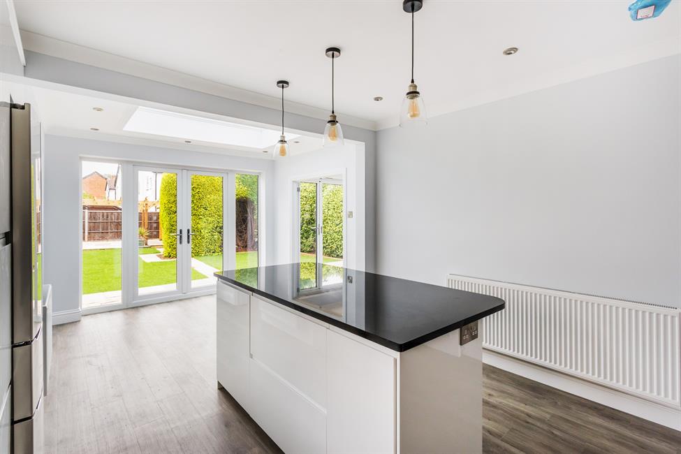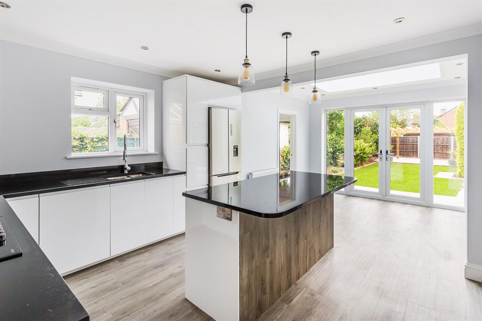 Particular features include a luxuriously appointed kitchen/breakfast room with integrated appliances and centre island. The kitchen also benefits from sky lantern and French doors opening up onto the rear garden. Other benefits include an impressive living room with bi-folding doors to the rear garden and sky lantern.