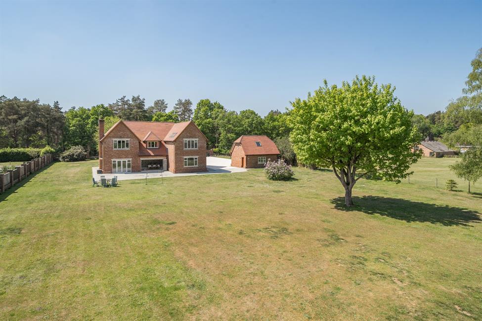 Nestled in an enviable semi-rural position on the outskirts of Pirbright, this exceptional newly built executive residence offers the perfect fusion of luxury, space, and tranquillity. Set within a generous plot in excess of two acres and backing onto enchanting woodland, this stunning family home has been thoughtfully designed to complement its idyllic surroundings while providing the high standards of modern living.