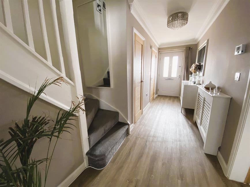 Welcome to this inviting family home nestled within a tranquil cul-de-sac in a coveted, contemporary neighbourhood. Believed to be situated in the catchment area of the esteemed Gordon's School, this property boasts a prime location for families seeking a quality education. As you step through the front door, you are greeted by a generously sized entrance hall that sets the tone for the spaciousness that awaits within. A convenient downstairs cloakroom is discreetly tucked away for added convenience.