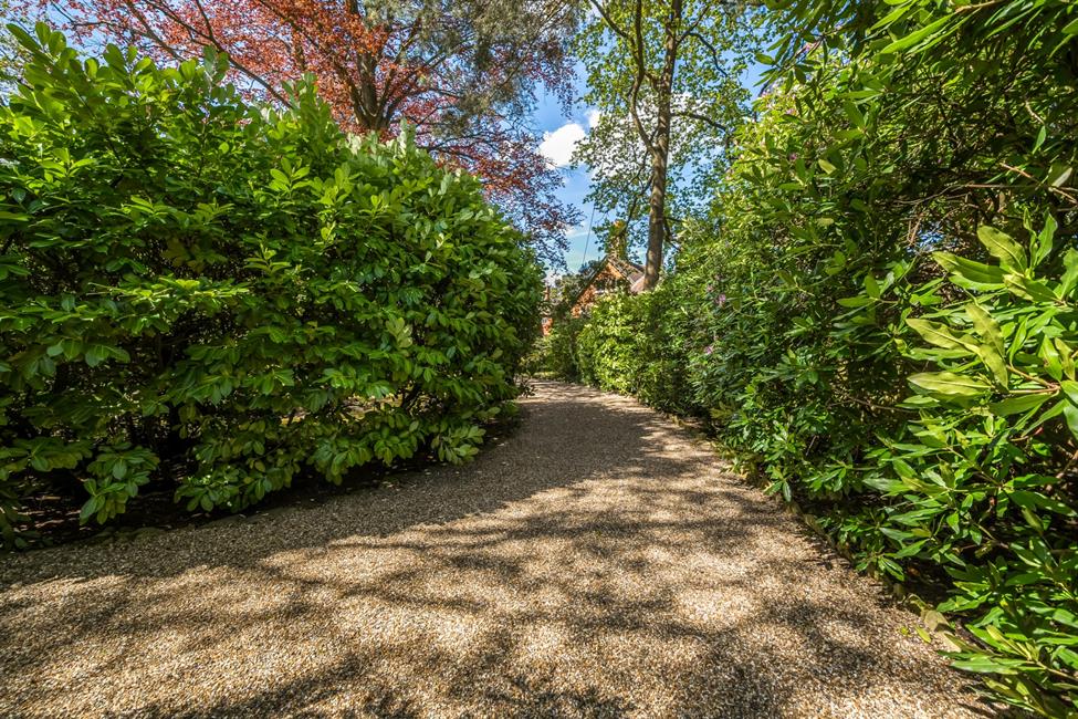 Outside, impressive mature secluded gardens beckons, offering an oasis for outdoor leisure and entertaining. A drive provides off-road parking and leads to a detached garage, ensuring both convenience and peace of mind. With its prime location within walking distance of Woking Town Centre and its mainline station, this residence offers the perfect blend of tranquillity and connectivity, promising an unparalleled living experience in the heart of Woking's vibrant community.
