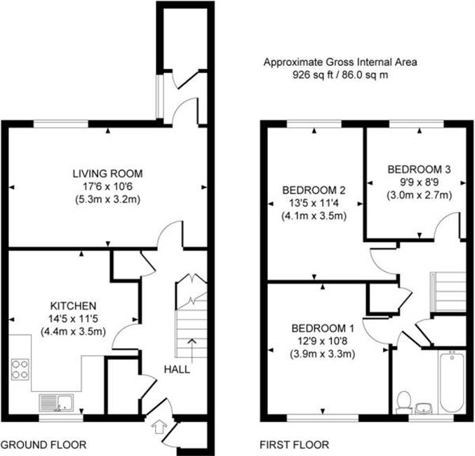 The accommodation is thoughtfully laid out, featuring a convenient downstairs cloakroom, a spacious 14ft kitchen/dining room perfect for family meals and entertaining, and a generous reception room. Upstairs, you will find three double bedrooms, each offering comfortable living space, and a family bathroom. The property boasts modern amenities such as double glazed windows and efficient gas central heating, ensuring a warm and cosy atmosphere year round.