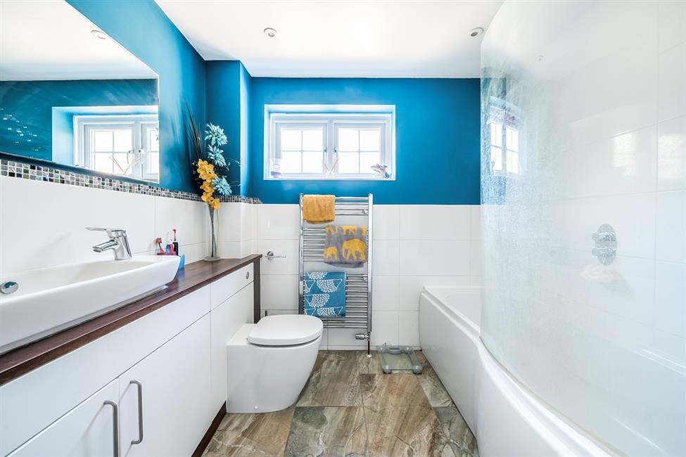 The ground floor boasts a beautifully appointed kitchen, a handy utility room and a generous 26ft living/dining room, perfect for family gatherings and entertaining. A separate study provides an ideal space for working from home, while a convenient downstairs cloakroom completes the main level of accommodation. Upstairs, you will find four bedrooms, including a stunning 15ft principal bedroom with an en-suite shower room. The family bathroom serves the additional bedrooms, ensuring comfort for all.