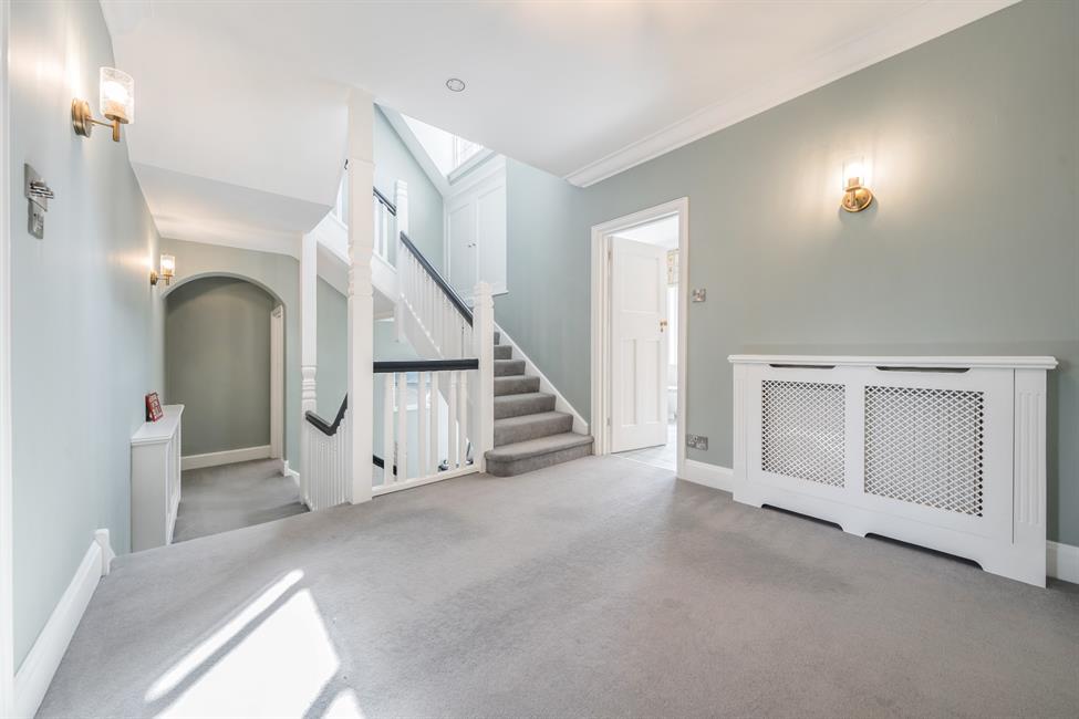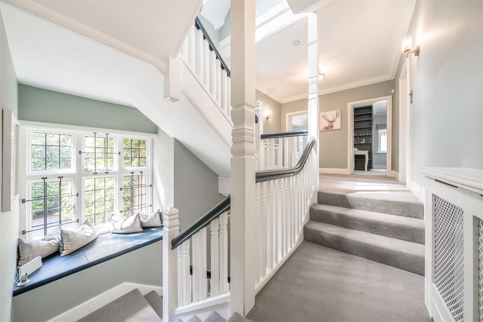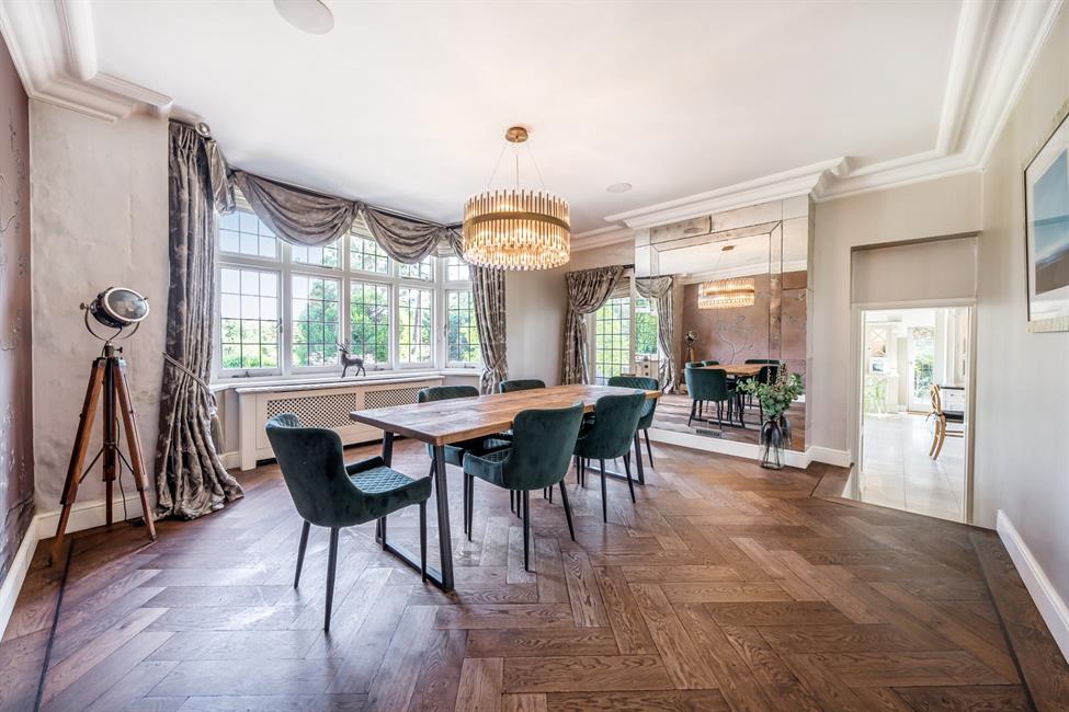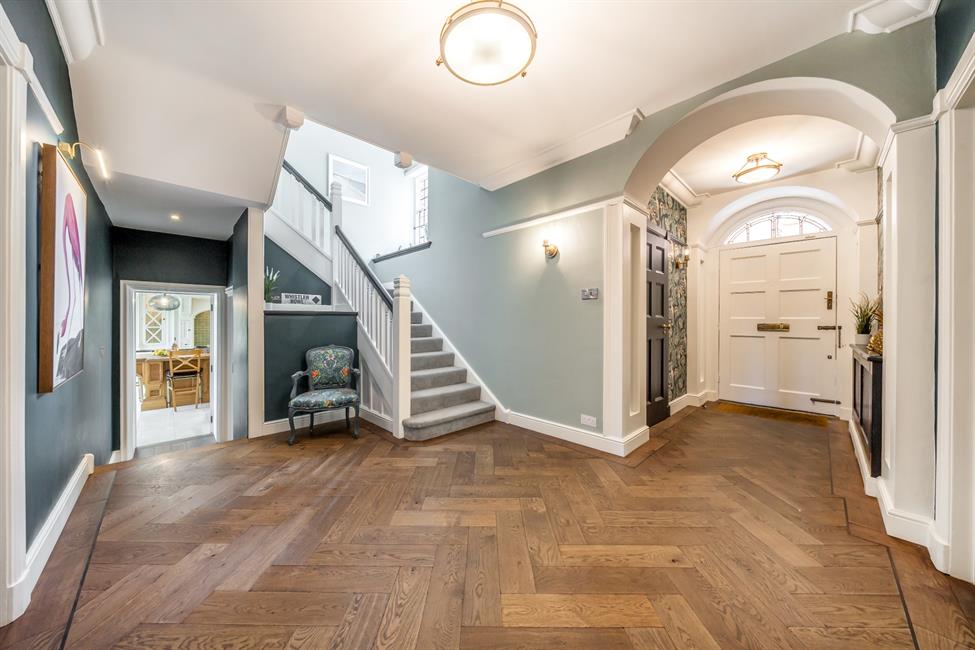 Introducing 'Bridley House,' a charming seven bedroom detached family residence, majestically positioned to offer breathtaking views over its expansive 1.27 acre south facing gardens. Built in 1916 by the esteemed architect and master builder WG Tarrant, this exquisite home exudes character, featuring high ceilings adorned with period cornicing, traditional large windows, and a variety of fireplaces. The spacious accommodation is thoughtfully arranged over three floors, including an impressive reception hall with a grand turning staircase, a dual aspect drawing room, two further separate reception rooms, and a large open plan Clive Christian kitchen.