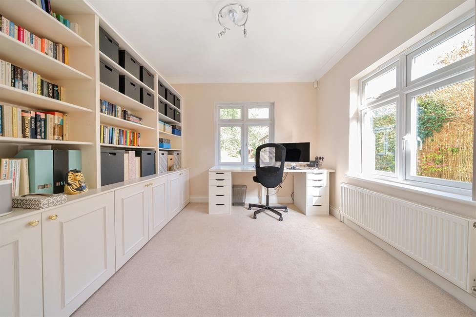 The beautifully designed interior includes five spacious double bedrooms, with the principal suite benefiting from a dressing room and a luxurious en suite bathroom. A guest bedroom also features an en-suite shower room, while the remaining bedrooms are well-served by the family bathroom. The heart of the home is an impressive open-plan kitchen, dining, and family room that spans the entire rear of the property, creating a stunning space for both everyday living and entertaining. Complementing the open-plan design, the property also boasts three additional reception rooms, offering versatility for formal entertaining, a home office, or relaxation. A utility room and a downstairs cloakroom add further convenience.