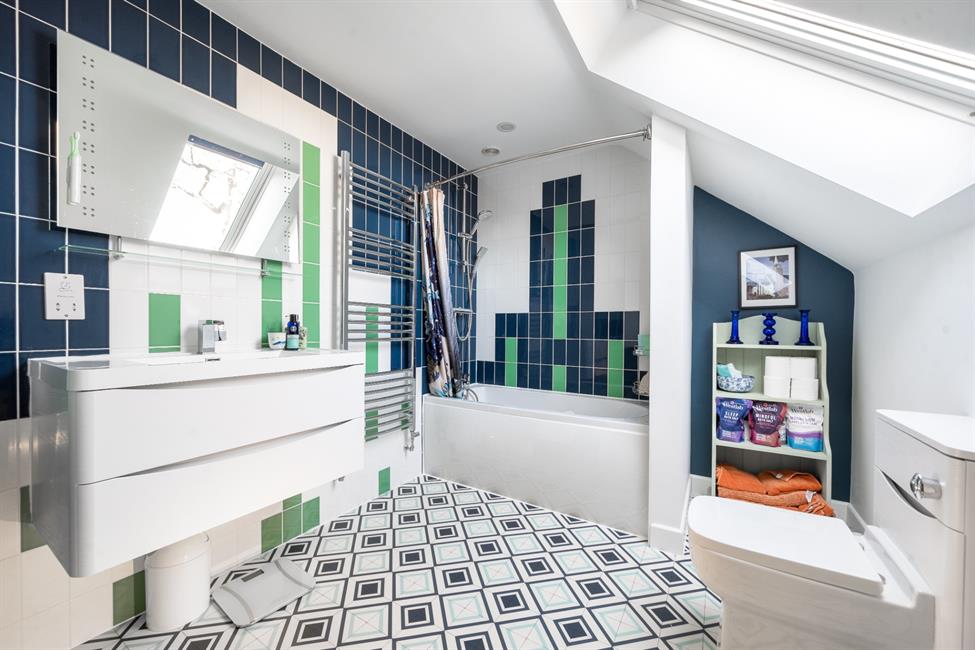 The heart of the home is the stunning open-plan kitchen and dining area, seamlessly designed for both family gatherings and entertaining, featuring a modern fitted kitchen, a spacious dining area, and an adjoining family room with an eye-catching feature wall of exposed brick. The versatile layout offers three reception rooms and up to six bedrooms, providing ample space for flexible family living.