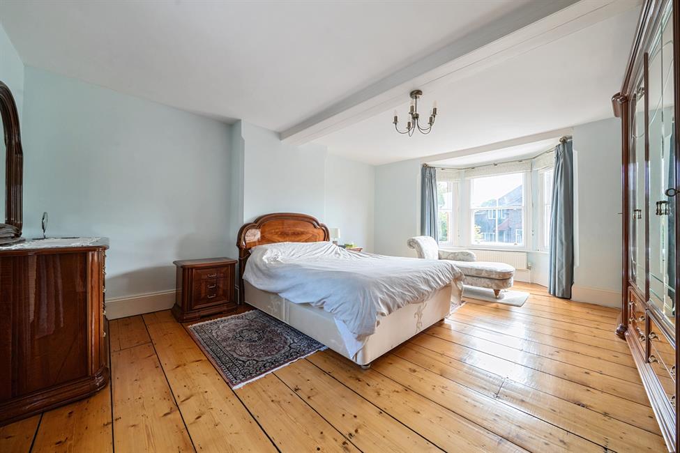 Upstairs, the property offers five generously proportioned double bedrooms and three bathrooms, providing well-balanced living space ideal for growing families. Period features are retained throughout, enhancing the property’s unique charm and character.