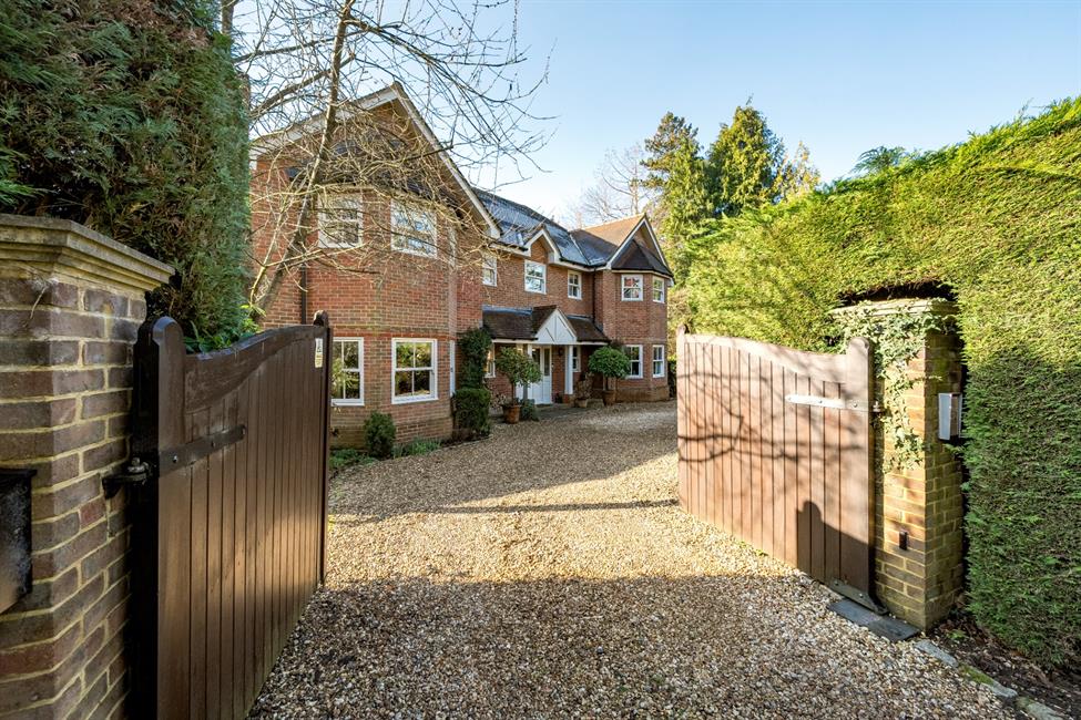 Nestled within one of Hook Heath’s most prestigious and sought-after roads, ‘Overdale’ is an exceptional residence that epitomises elegance and exclusivity. Discreetly tucked behind secure double gates and framed by mature hedgerows, this distinguished double-fronted home is set within beautifully landscaped, wrap-around gardens that exude tranquillity and charm.