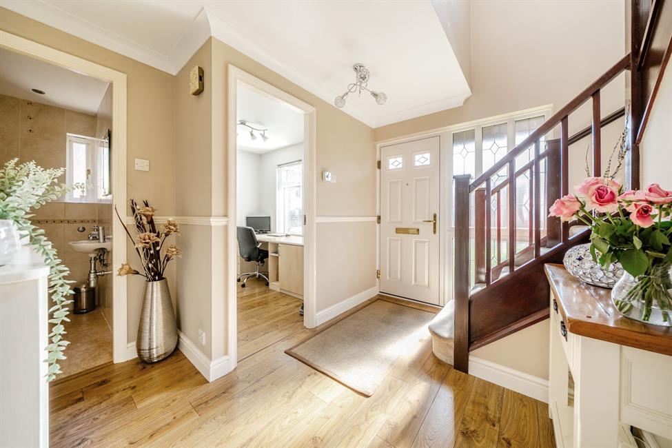 This beautifully presented four-bedroom family residence offers spacious and versatile living, perfect for modern family life. The property boasts a thoughtfully designed layout, featuring a well-appointed kitchen/breakfast room, lounge with feature fireplace, a dedicated study ideal for remote work, a bright and airy conservatory, and a practical utility room. Every space has been carefully maintained, ensuring a warm and inviting atmosphere throughout.