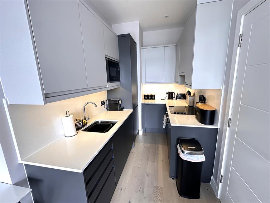 The Basingstoke Canal and a nearby supermarket are both just a short walk away, adding to the everyday convenience of this setting. Stylish and secure, this apartment offers an excellent opportunity for those seeking contemporary living in a highly connected location.