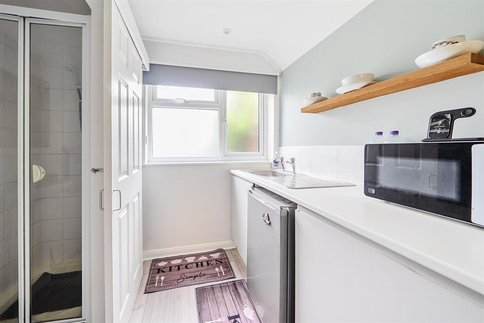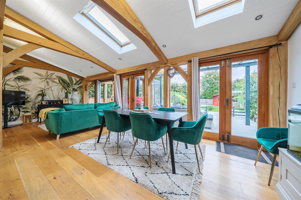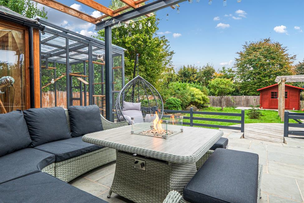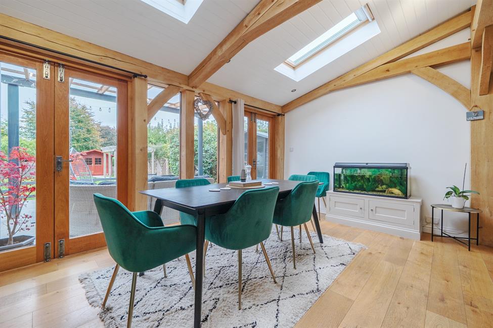 Upstairs, the home continues to impress with four bedrooms, including a beautifully appointed principal suite with an en-suite shower room. The remaining bedrooms are served by a contemporary family bathroom, all finished to a high standard. Beyond the main house, a fully insulated detached garden cabin complete with a wood-burning stove offers excellent flexibility — perfect as a home office, gym, studio, or cosy retreat throughout the seasons.