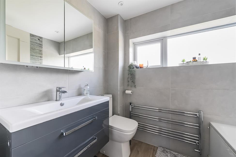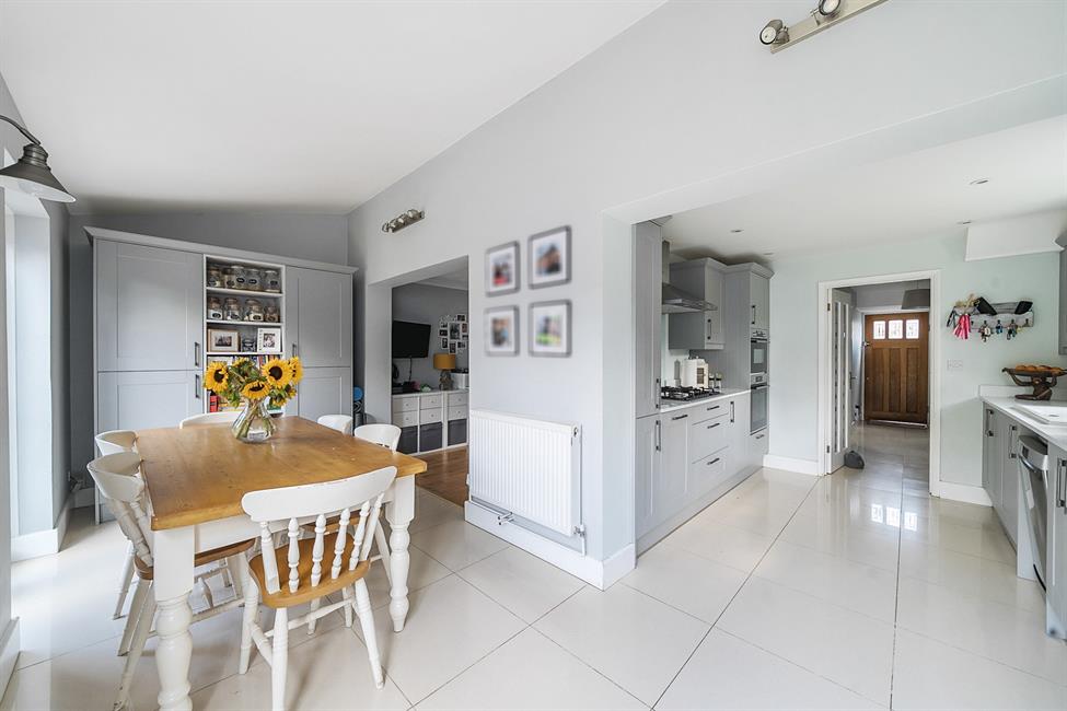 The ground floor also includes a bright and airy open-plan playroom, a separate and comfortable living room, and a newly installed, well-appointed kitchen with modern fixtures. A convenient downstairs cloakroom completes the ground floor layout, ensuring practicality for everyday life. Upstairs, the first floor offers three well-proportioned bedrooms, all accessed from a central landing, along with a luxuriously fitted bathroom that adds a touch of elegance.
