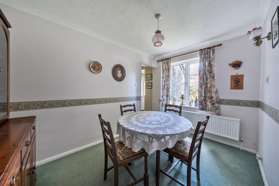 The ground floor accommodation is thoughtfully arranged, featuring a bright and airy double-aspect living room that creates an inviting space for relaxation. A separate dining room provides a formal setting for entertaining, while the well-proportioned kitchen offers scope for modernisation and personalisation. Completing this level is a practical downstairs cloakroom. Upstairs, the first floor is arranged around four generously sized bedrooms, each offering comfortable proportions. These are served by a well-appointed family bathroom.