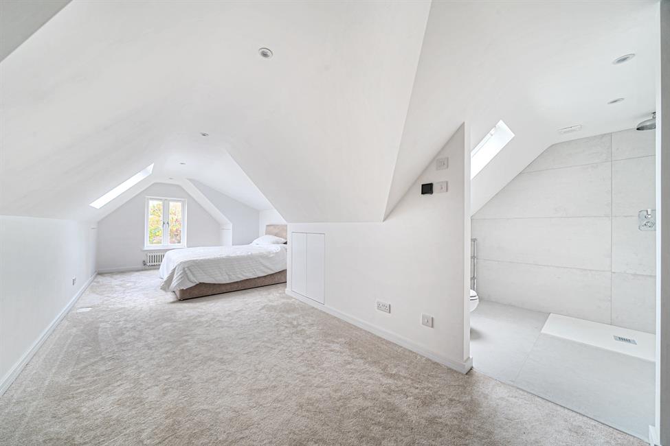 The first floor is arranged to offer three bright and generously proportioned double bedrooms. Bedroom two benefits from a private en-suite shower room, while the remaining rooms are served by a stylish family bathroom. The entire top floor has been transformed into a superb principal suite, offering a spacious double bedroom, luxurious en-suite shower room, and ample storage—creating a peaceful and private haven away from the main living areas.