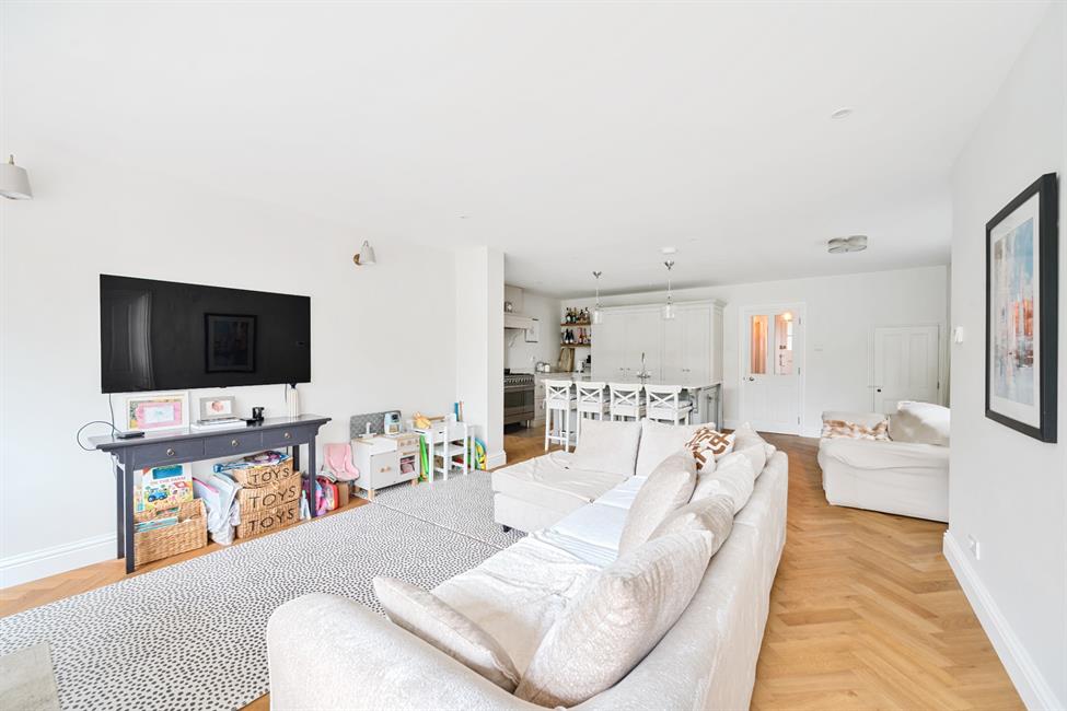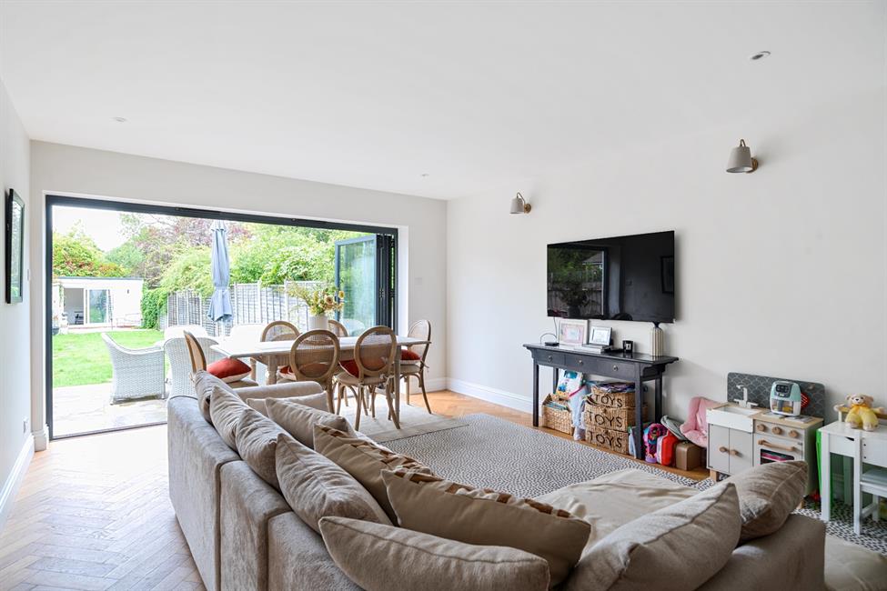- Expansive open-plan kitchen/dining/family room with bi-folding doors to the garden