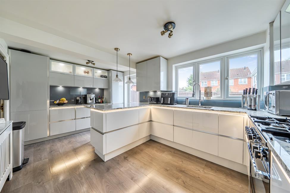 A beautifully appointed kitchen/breakfast room forms the heart of the home, while a spacious living room and separate dining room provide flexible spaces for entertaining or relaxing. A bespoke double-glazed conservatory bathes the home in natural light, creating a welcoming space for family gatherings. A downstairs cloakroom completes the ground floor. Upstairs, four generously proportioned bedrooms offer comfort and privacy, including a principal suite with an en-suite, while a family bathroom serves the remaining bedrooms. The versatile layout is ideal for family life, whether for work, study, or play.