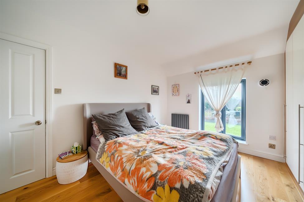 Upstairs, the property continues to impress with three generous double bedrooms and a beautifully finished family bathroom. The principal bedroom features fitted wardrobes and enjoys far-reaching views across the surrounding countryside and towards the river, providing a particularly peaceful and scenic outlook.