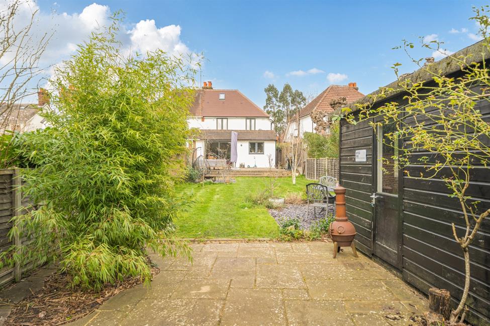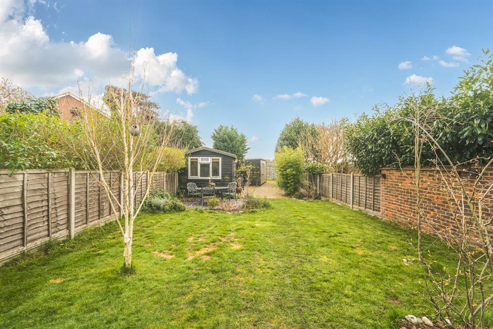 The rear garden is a true highlight, extending to over 100ft in length and backing directly onto the River Wey, creating a tranquil setting with picturesque views. The garden also benefits from two substantial outbuildings, offering excellent potential for storage, a home office, gym or studio. To the front, a private driveway provides convenient off-street parking for two vehicles.