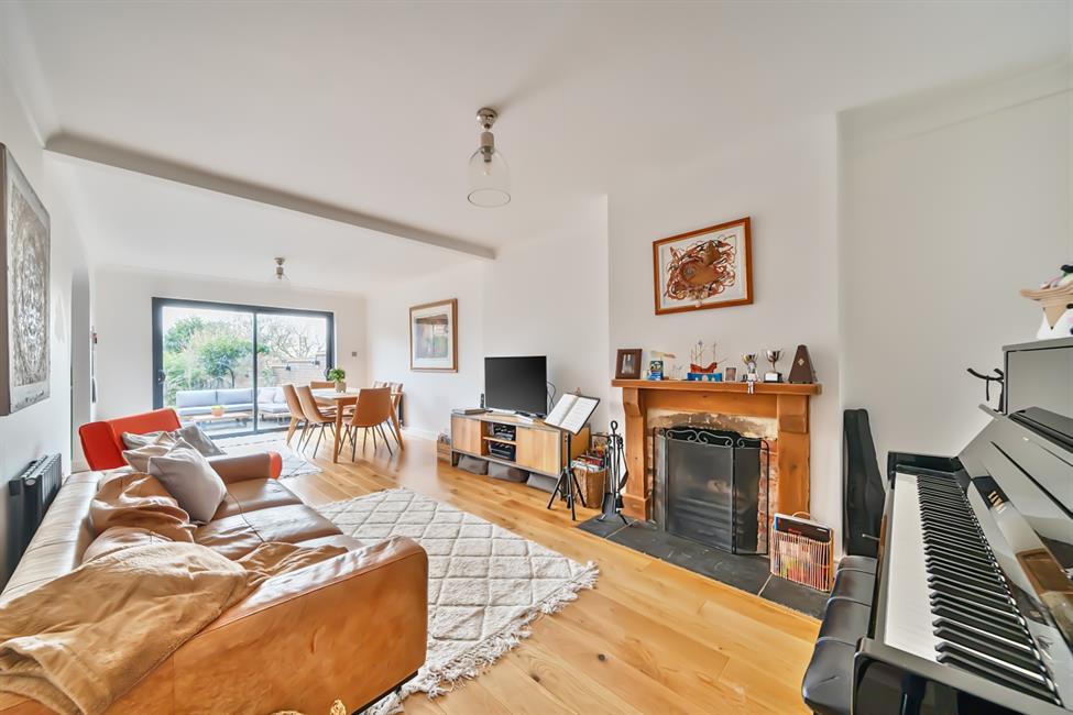 The ground floor is centred around an impressive 26ft open-plan reception room, filled with natural light and providing direct access to the rear garden, creating a wonderful space for both relaxing and entertaining. The luxuriously appointed kitchen flows seamlessly into the dining area, forming a sociable hub of the home. A separate study/family room offers valuable flexibility for home working or additional living space, while a well-appointed shower room completes the ground floor accommodation.