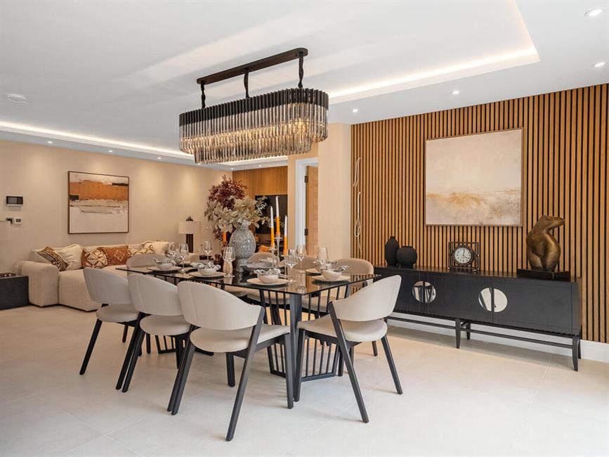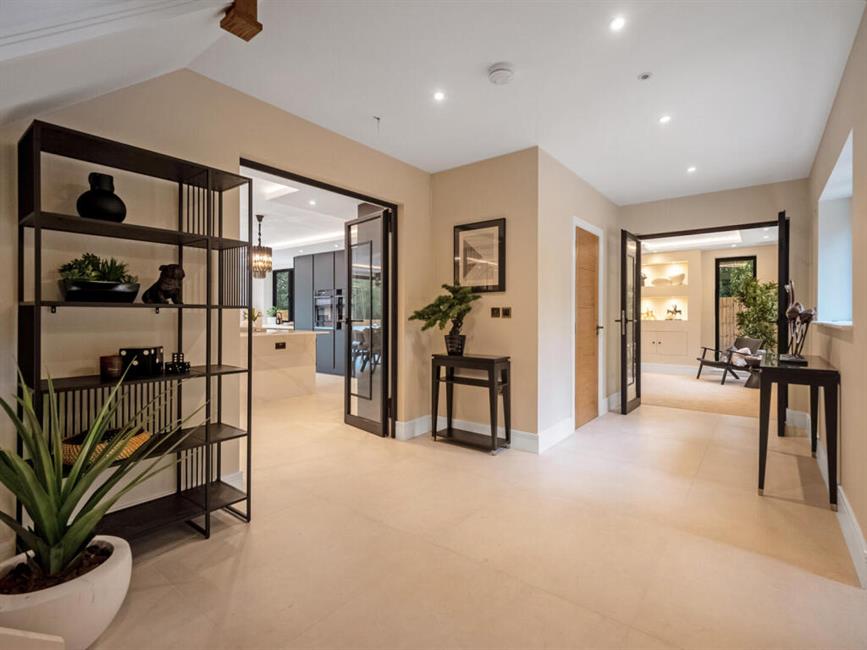 This remarkable home has been carefully extended and reimagined to create a lifestyle-focused residence, combining contemporary luxury with timeless charm. The interiors are bathed in natural light and designed to flow effortlessly, with expansive open-plan living spaces that effortlessly accommodate both entertaining and relaxed family life. The heart of the home is a superb kitchen, dining, and living area, featuring full-width bi-fold doors that bring the outdoors in and open onto the beautifully maintained gardens.