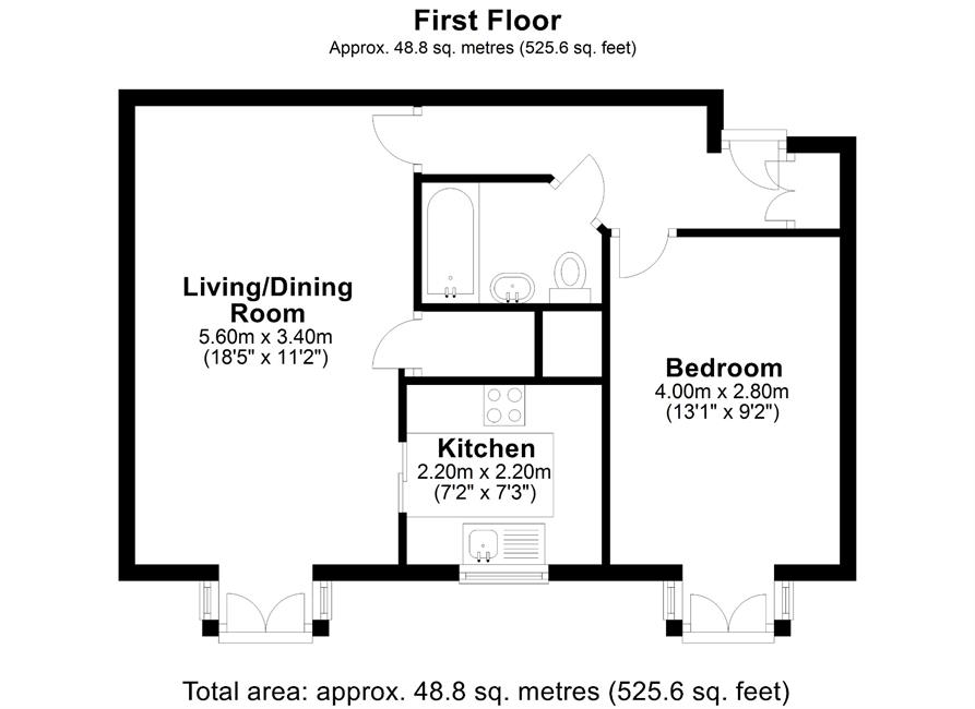 The apartment itself provides light-filled and well-proportioned accommodation, designed for comfortable everyday living. The spacious reception room opens onto a charming Juliet balcony, allowing fresh air and natural light to flow through and creating a welcoming space to relax or entertain. The separate kitchen is neatly arranged and practical, while the generous double bedroom offers a calm and restful retreat. A separate bathroom completes the layout.