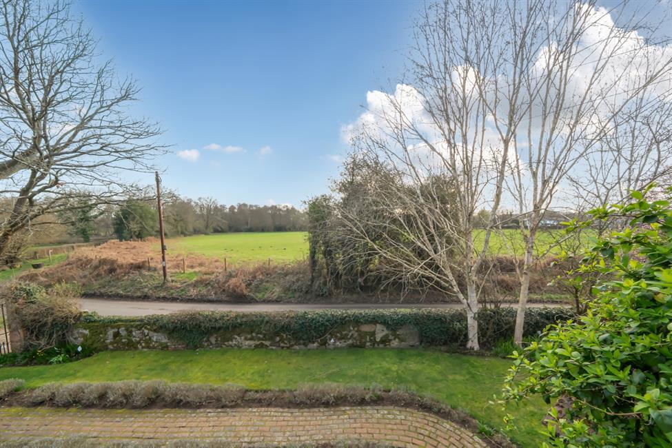 Set along a peaceful country lane and enjoying uninterrupted views across open fields, this exceptional period residence occupies grounds of approximately one acre and offers a rare blend of historic character and refined modern living. The home immediately impresses with its timeless charm, displaying a wealth of original features including exposed wall and ceiling beams, vaulted ceilings and a magnificent inglenook fireplace. Unusually for a property of this era, the ceiling heights are notably generous, creating a wonderful sense of space and light throughout.