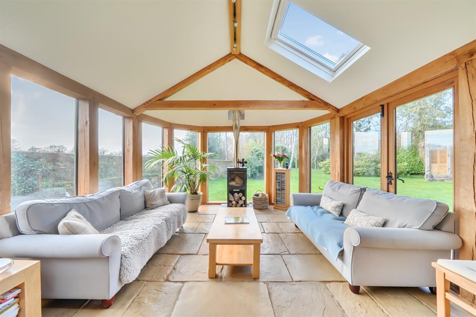 - Luxuriously appointed kitchen with feature island, open plan to dining room and oak-framed orangery