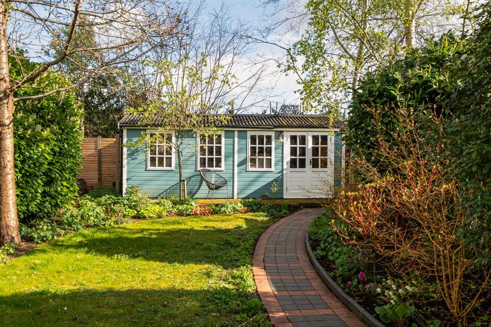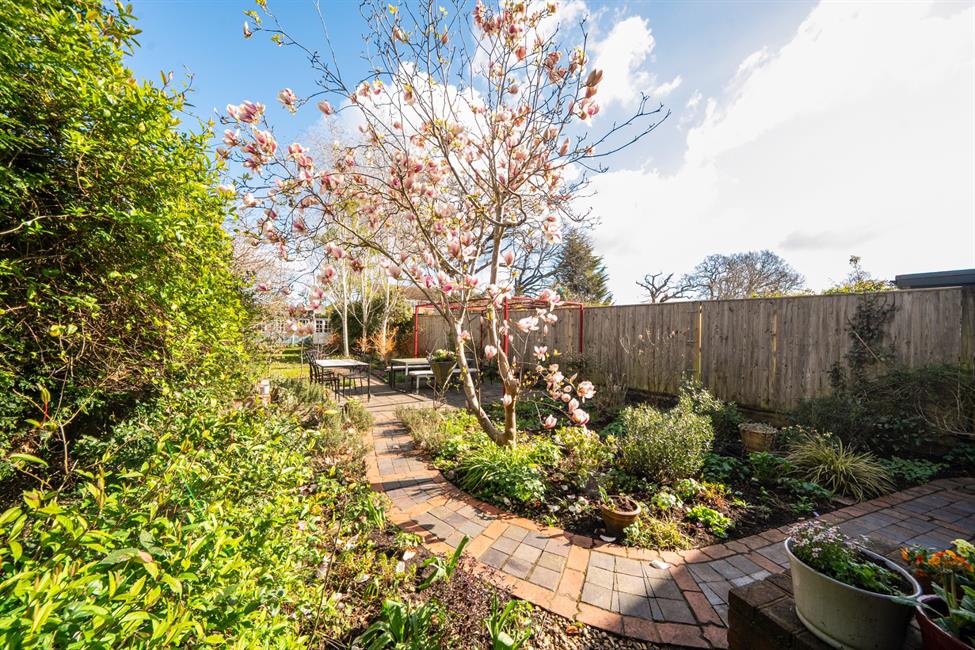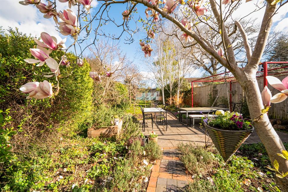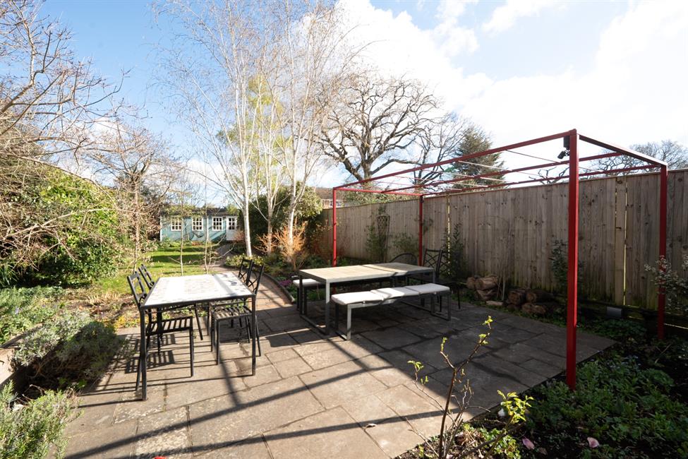 Externally, the rear garden extends to approximately 100ft and is a particular highlight, having been lovingly cultivated over generations. Professionally planted and meticulously maintained, it features established silver birch trees planted in the early 2000s, alongside a recently added quince tree. A custom-designed red pergola, crafted by a local forge, provides a striking focal point and offers welcome shade during the summer months. Thoughtful outdoor lighting has been installed throughout the garden, side path and shed, enhancing both ambience and practicality, while a pathway leads to a useful outbuilding. Additional benefits include covered bike storage to the side of the house. To the front, a driveway provides off-street parking. This is a truly special home, combining architectural flair, period charm and modern convenience in one of the area’s most desirable locations.