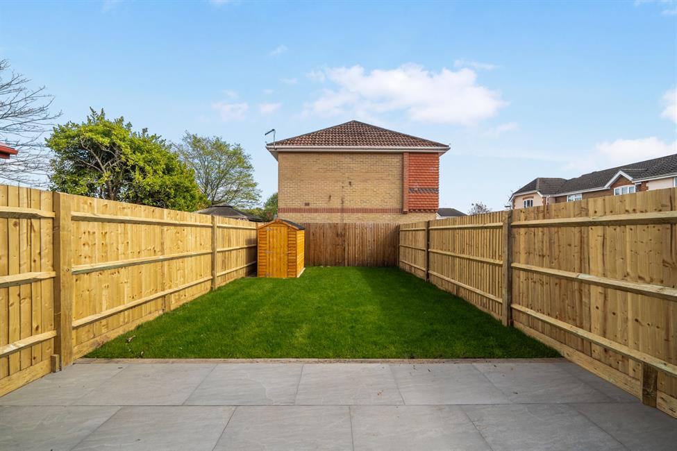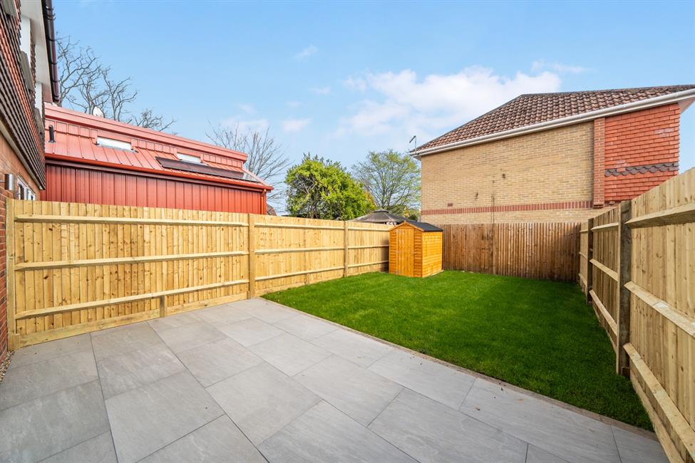 - Private garden with patio and shed